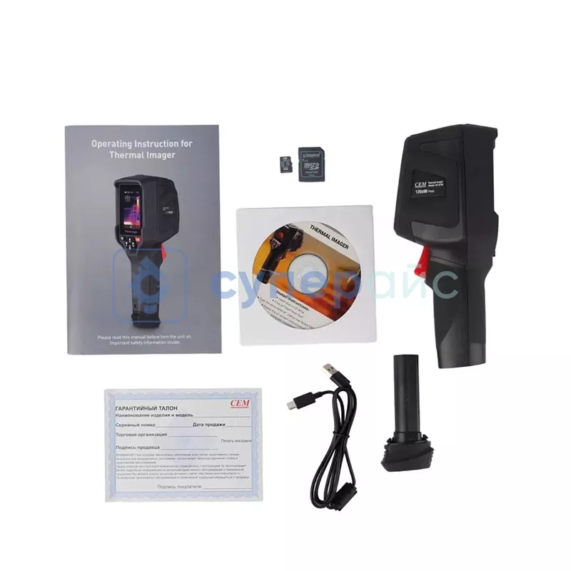Комплектация | тепловизор CEM DT-979E - 1 шт USB-кабель - 1 шт аккумулятор - 1 шт диск с ПО - 1 шт micro SD-карта - 1 шт гарантийный талон - 1 шт сертификат соответствия - 1 шт руководство пользователя - 1 шт |
